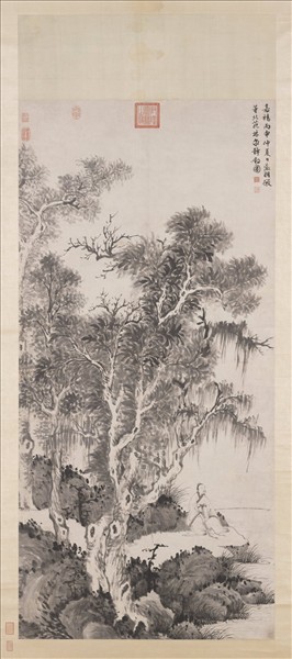 明文徵明倣董源林泉靜釣圖 軸
