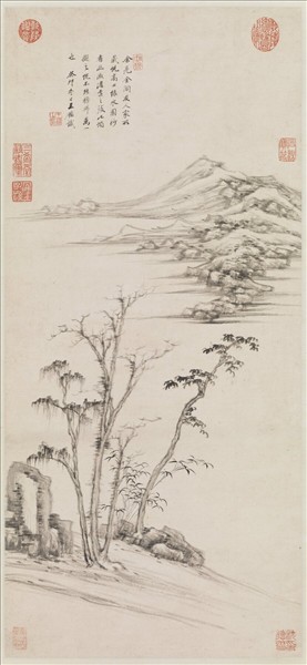 清王鑑倣倪瓚山水 軸