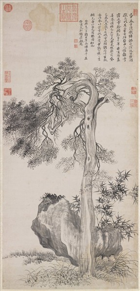 清惲壽平畫禹穴古柏 軸
