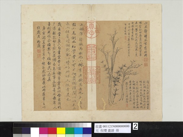 元倪瓚畫譜 冊 大小樹間竹