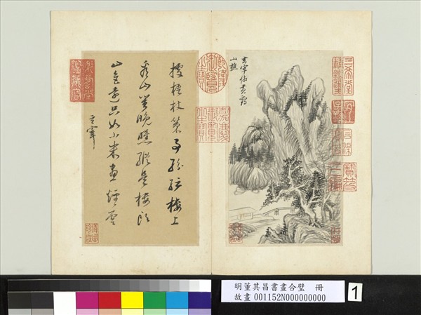 明董其昌書畫合璧 冊 仿黃鶴山樵嶺樹溪橋