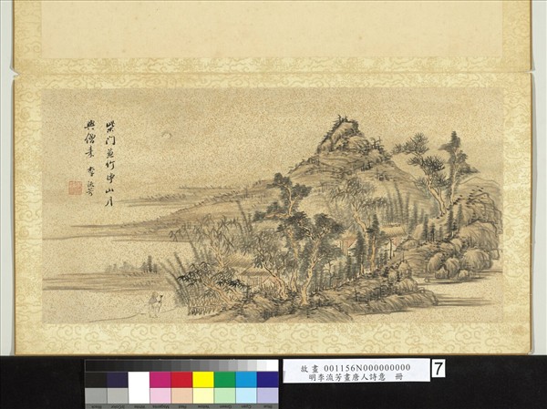 明李流芳畫唐人詩意 冊 錢起山齋獨坐喜元上人夕至詩
