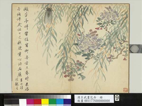 清王武畫花卉 冊 秋柳棲蟬