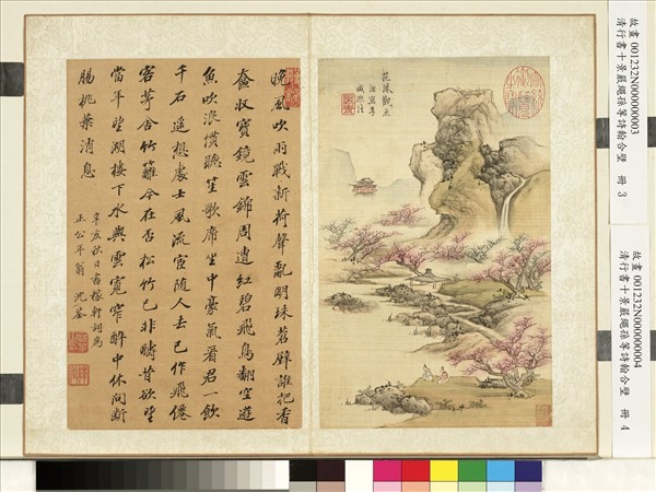 清藍深畫西湖十景嚴繩孫等詩翰合壁 冊 花港觀魚沈荃行書