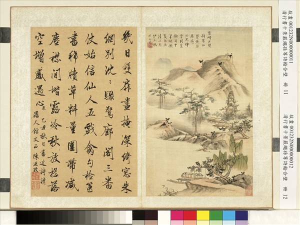 清藍深畫西湖十景嚴繩孫等詩翰合壁 冊 雷峰夕照陳廷敬行書