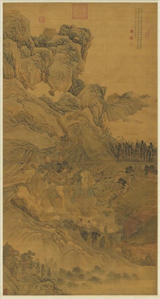 陸治(西元一四九六-一五七六年),江蘇吳縣人。字叔平,號包山子。畫山水折衷四大家,近則受沈周、文徵明影響。晚年用墨愈枯淡,用筆愈方勁,自成一格。  江蘇宜興縣東南有張公山,山中有張公洞。相傳漢張道陵曾居住在此,山洞怪石參差羅列,幽深神祕,本幅所繪正是此洞,為一紀遊寫景之作。山石結體方勁峭利,巖石皴法線條細瘦,頗能脫去文氏的格局,自成風貌,是陸治成熟期的作品。