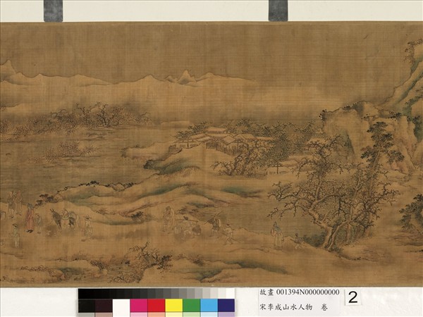 此卷描繪山水行旅場景,以江面區隔兩岸。中段江面上有一艘渡船,載滿各式旅人,正往卷首岸邊前進。後段的岸邊停靠著船隻,並有屋舍建築,畫卷最後繪一寺院建築。畫中用筆細膩,水墨烘染與淡色暈塗兼用,既能顯示山林雲氣,又能營造淡雅韻致,顯示出受到吳派影響的特色。舊題畫家為李成,實無關連,應是十七世紀的作品,顯示出清初畫家陸遠畫風。(20120408)