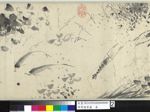 常倫,字明卿,又署二華,澤州沁水人(今山西沁水)。書法瀟灑遒勁,能文辭,兼工書畫。拖尾黃葉庵題跋,署年癸亥(1623),謂其「八十餘」,則其生平當在一五四三年前。   本卷起首處畫水中魚蝦,繼而畫草上各種昆蟲,如蝴蝶、螽斯、螳螂、蜻蜓,飛走跳躍。以水墨呈現,筆墨自由揮灑,極為隨意,大有筆歌墨舞之妙。
