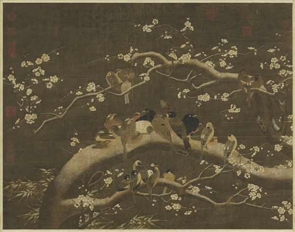 宋錢選雪梅集禽圖 軸