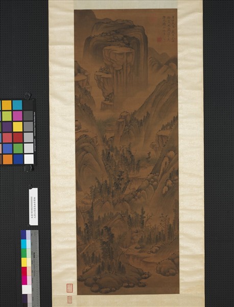 依款題此作為黃公望於至正九年(1349),為孫元璘所作,與另一展件〈層岩曲澗〉款題紀年與受畫者相同。孫元璘似乎是至正年間與黃公望友朋圈往來頗密的人物,陶宗儀《輟耕錄》有此人觀星象的簡短記錄。 此作構圖與〈層岩曲澗〉雷同,然更顯狹長,並簡省許多細節。其畫風受正統派影響似不強烈,反有以類沈周風格重組原作之感,推測亦為明末清初時的臨仿之作。 (20110609)