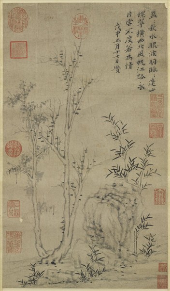 元倪瓚古木竹石 軸