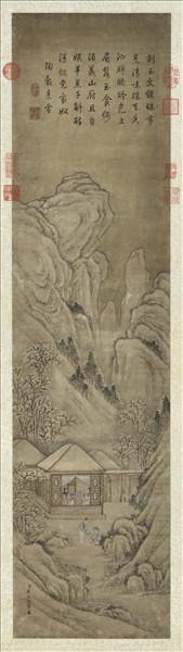 清唐岱畫雪景人物即事御題 軸