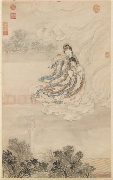 西王母是古代神話中的女神,亦稱王母娘娘。據傳容貌絕世,有大群仙姬隨侍,並曾把三千年結果一次的蟠桃賜給漢武帝。後世的小說、戲劇多據此衍為蟠桃盛宴的故事。相傳農曆三月三日為王母聖誕,是日群仙皆來為之慶壽,王母在其所居瑤池,設蟠桃宴會,酬謝群仙。 《西遊記》第五回「亂蟠桃大聖偷丹,反天宮諸神捉怪」,就是據此傳說加以發展而成的熱鬧情節。