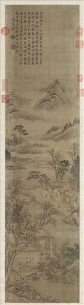 清周鯤繪高宗御書范成大祭竈詞 軸