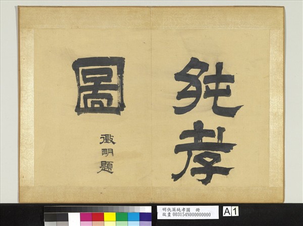 這套冊頁以每開為一單元的方式,畫二十四孝的故事。各開中右圖左文,圖選擇以故事中的一段主要情節為主題,末幅有明四大家之一仇英(約西元一四九四-一五五二年)的款印。雖然這本畫冊畫得相當精細,但缺少了仇英畫作中常見的典雅細緻。此外文字部分雖然有文徵明(一四七Ο-一五九九)與許初(十六世紀)的題字與印章,但書法風格與印章都與二人有別,所以這件作品應是後人偽託之作。