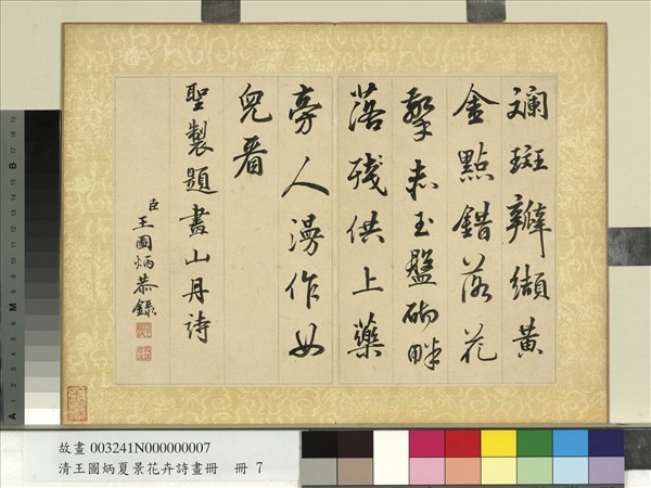 清王圖炳夏景花卉詩畫冊 冊 書御製題畫山丹詩