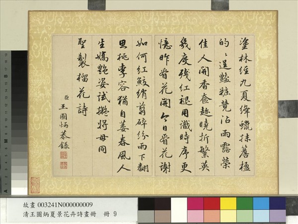 清王圖炳夏景花卉詩畫冊 冊 書御製榴花詩
