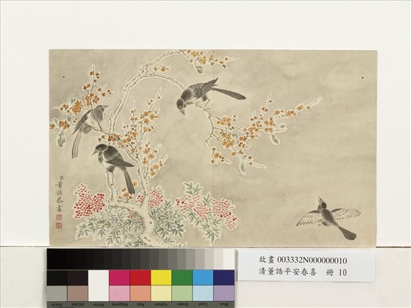 清董誥平安春喜 冊 冬卉喜鵲