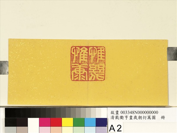 戴衢亨,乾隆時以畫供奉內廷,善畫山水人物。生卒年及里藉均待考。   本冊畫歲朝時景十四開,標題各以數序為首。以兆歲朝蕃衍孳息之意。