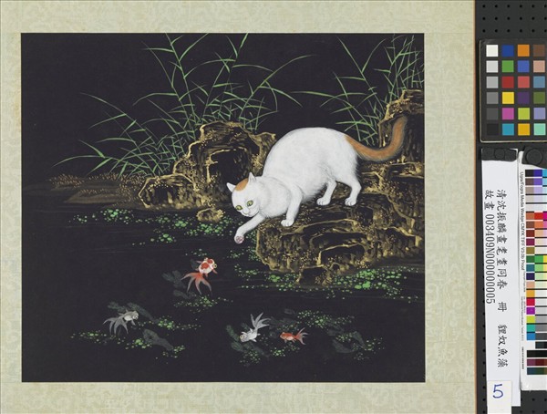清沈振麟畫耄耋同春 冊 貍奴魚藻