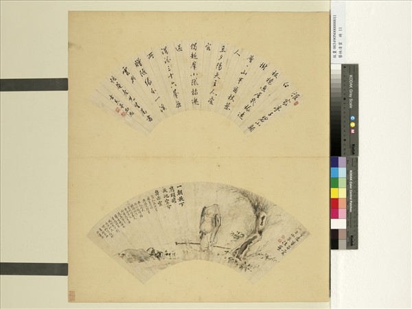程偉元(?─約一八一八年),字小泉,蘇州人。布袋和尚僧名契此,是唐末高僧,形裁腲肥,常以杖荷布袋入市廛化物,故人稱之為布袋和尚,本幅畫布袋和尚立於古樹下,袒腹露胸,舉手伸欠,布袋與荷杖置於其後。通幅以指作畫,點劃草草,而人物情態畢具。本幅為「藝林清賞」第十一開。