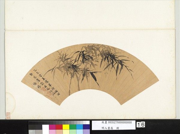 項德新(西元一六二三生,卒年不詳)字復初,為項元汴子。善山水,亦善寫生。流傳很少。 入眼的竹叢,一派淋漓。畫家題款寫到:乙巳(一六0五)首夏攬翠軒聽雨,即其簷前雨枝作此。畫家確實是把竹葉帶著雨水的效果做到了。基本的技巧是利用吸水性較少的紙張,使深淺不同的墨色交融,看來葉片上的雨水還未乾的感覺。