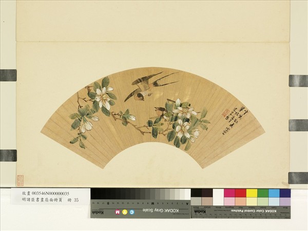 明諸臣書畫扇面冊頁 冊 明米萬鐘春燕梔枝