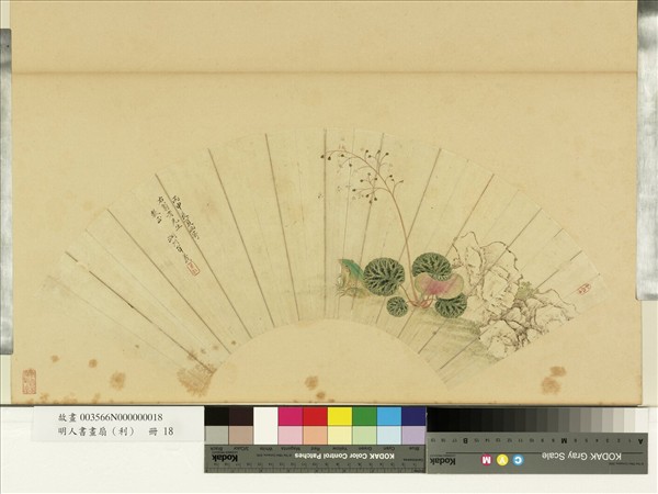 明人畫扇(利) 冊 明牟義虎耳草青蛙