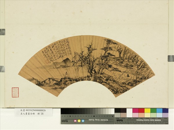 石濤(西元一六四二至一七0七年),本名朱若極,廣西桂林人,明清江王朱贊儀第十世孫。明亡後在全州投寺為僧,後遊歷安徽宣城,隱居金陵、揚州等地。善畫山水、花果、蘭竹,倡我用我法,脫盡前人窠臼,與漸江、石谿、八大山人並稱明末四僧畫家。 本幅畫溪橋林屋,喬松新簧,一人讀書窗邊,一人策杖來訪,用筆草草不經意,而有樸拙之趣。 本幅選自「名人書畫合冊」。