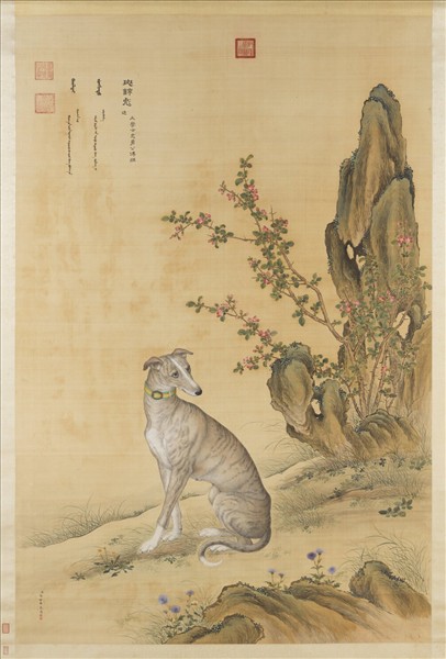 清郎世寧畫十駿犬斑錦彪 軸