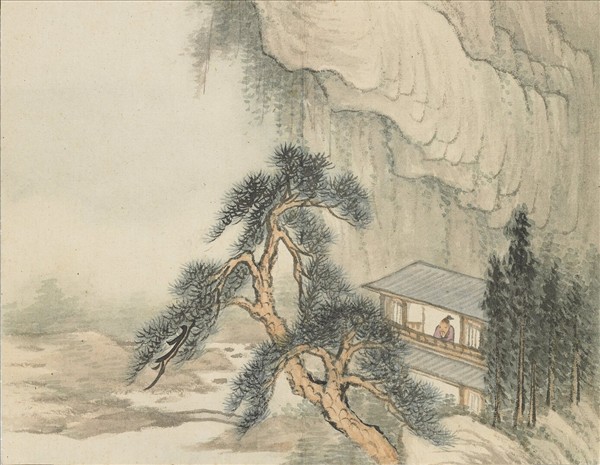 紙本冊頁,前後以木質裝幀,木質封面上有填金「馮祥山水」楷字題銘。首頁繪山下房舍,屋中一人正向外遠望,接著或繪山巒屋宇、或寫高士策杖、漁人舟行之景,視角或近或遠,顯示了整卷的變化,又筆帶水氣,並用淡色系點染青山綠葉,表現出淡雅的氣質。卷末有「臣馮祥恭畫」楷款與「臣」、「祥」方印。本冊與其他九件書畫同儲於漆盒中。
