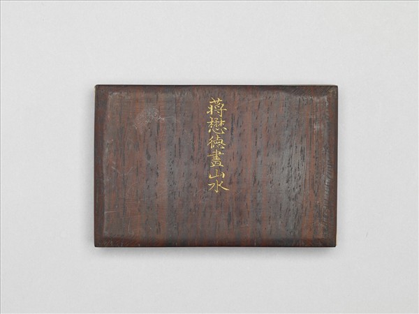 紙本冊頁,前後以木質裝幀,木質封面上有「蔣懋德畫山水」填金五楷字題銘。內為蔣懋德所畫山水,為南方峰巒較為平緩的水岸景色,大抵用乾筆勾畫山形輪廓,輪廓內施以簡單的皴擦表現山石肌理,首段山青、中段山則翠綠並帶幾樹紅花,末段山以土色為主調、並略染淡青,或有將不同時序合收於同卷的繪畫心態。卷末有「臣蔣懋德恭畫」楷款,內首頁並有「嘉慶御覽之寶」朱文方印。