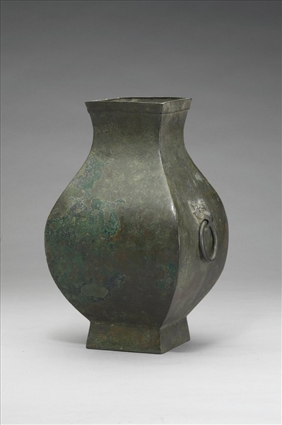 全器作方形,侈口,縮頸,獸首銜環耳,鼓腹,高圈足。