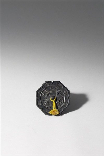 八瓣菱花形鏡,半球鈕。鏡背飾騎乘獅子、鸞鳳、駿馬及鶴的仙人。鏡緣則以蜜蜂及花枝間隔排列。