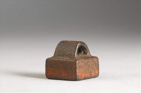方印,瓦鈕,印身厚高,印面鑄白文二字「張輔」。