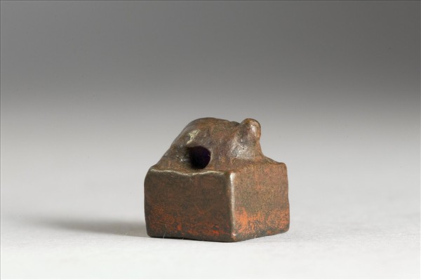 方印,龜鈕,印身厚高,印面鑄白文四字「王崇私印」。