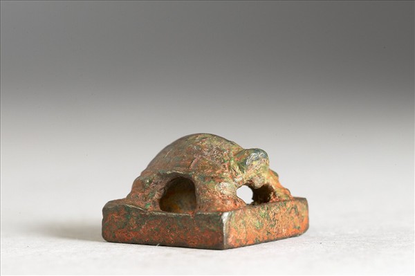 方印,龜鈕,印面鑄白文三字「吳成印」。印面中為三字,左右有龍虎紋。