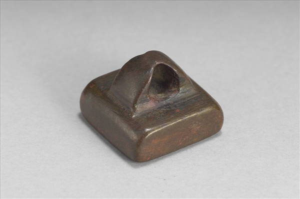 方印,鼻鈕,印身邊緣渾圓,印面鑄白文四字「軍曲候印」。