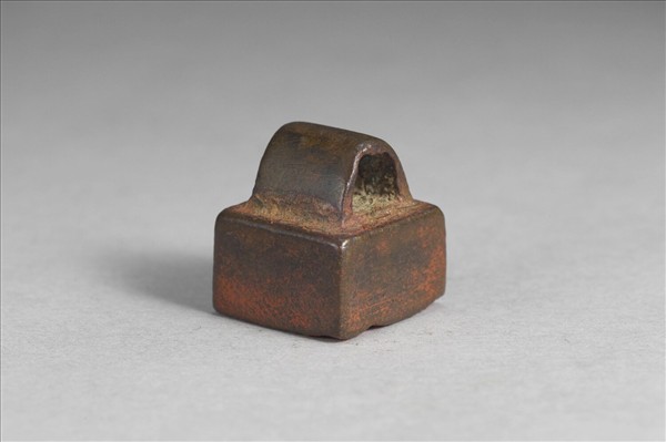 方印,瓦鈕,印身厚高,印面鑄白文四字「韓生私印」。
