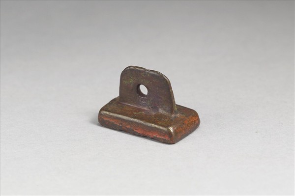 橛鈕,呈薄板狀並有一小圓穿可繫系,鈕板靠字首上緣幾乎與印背垂直,下端弧線較為斜削,或有指示方向的作用。印背平板無飾,印面長方形鑿刻陽文一字以八思巴正體字母拼寫對譯漢字「王」,屬於私人姓氏用印。