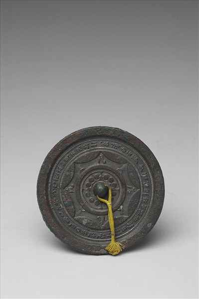 圓鏡,圓鈕、四葉紋鈕座,附木托、木匣。內區飾連弧紋,銘文帶三十六字,外區飾線紋。