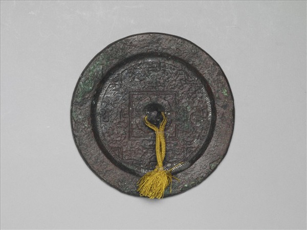 圓形,半球形鈕,柿蒂紋鈕座,座外以博局紋為飾,其間紋飾鏽蝕難辨。由於這一方銅鏡在乾隆朝被清高宗納入「寧壽續鑑」的收藏中。且收藏之際清宮曾加以命名為「漢 四神鑑」(參見故銅512N3),所以,其上原紋飾,應是與四神相關的紋樣。