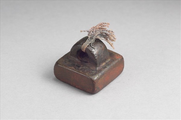鼻鈕,方面印體中厚,銅中帶紅,印面「軍假司馬」白文四字,無邊。整體筆畫樸實,篆法工整,較其他同款印為緊密。「假司馬」,武官名。據《後漢書.百官志》,將軍皆有部曲,屬官有軍假司馬、假侯,為常置武官。又軍假司馬、假候,皆為副將。