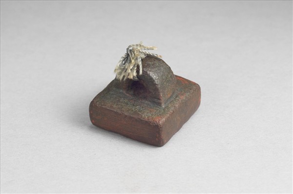 鼻鈕繫繩,方面印體中厚,印面「軍曲侯印」白文四字,無邊。印面磨損模糊,隱約可見殘餘刻痕,多處斑駁。