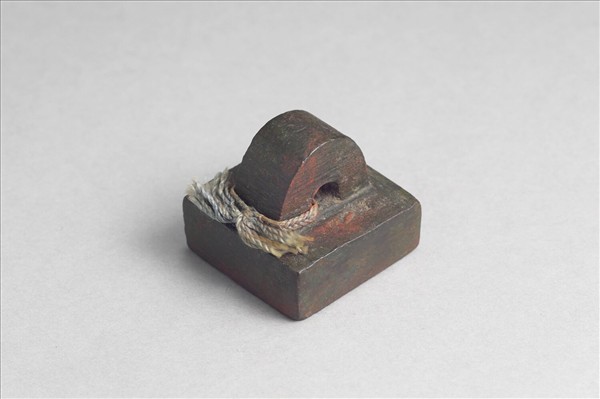 鼻鈕繫繩,方面印體中厚,印面「部曲將印」白文四字,鈕上有繫繩,無邊。整體篆法潦草,筆畫圓方之間未有安排,倉促而成。部曲將,漢末至三國時代武官名。