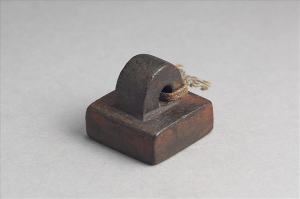 鼻鈕繫繩,方面印體中厚,印面「部曲將印」白文四字,無邊,鈕上有繫繩。整體篆法工整,筆畫細長,結構不甚均勻。部曲將,漢末至三國時代武官名。