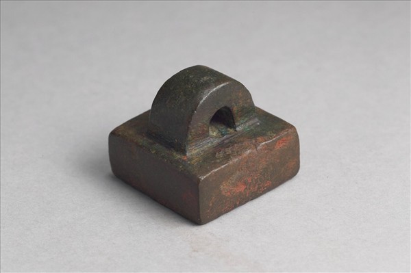 鼻鈕,印體中厚,印面「部曲將印」白文四字,無邊。整體篆法樸質,筆畫稍有剛硬之感,印面發黑,空間錯落。部曲將,漢末至三國時代武官名,東漢末戰事紛繁,《後漢書》〈何進傳〉、〈董卓傳〉、〈孝獻帝紀〉與《三國志.蜀書.魏延傳》等皆有提及部曲將,故知此類官印時代多為漢末至三國。
