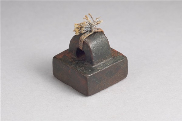 鼻鈕繫繩,方面印體中厚,銅中帶紅,印面「部曲督印」白文四字,無邊,屬魏晉之印。整體篆法工整,筆畫樸質剛硬,字滿方正之間。「部曲督」為統領部曲軍隊的將官,其權位當在「部曲將」之上,或與東漢的「大將軍」相當。