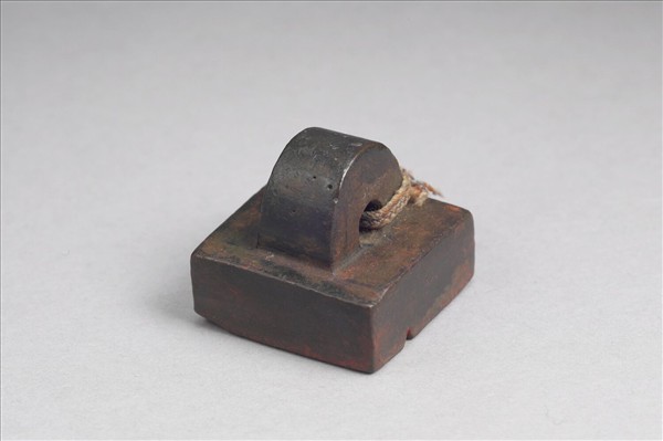 鼻鈕,方面銅印體中厚,印面白文「騎部曲督」四字,無邊,篆法工整,鈕為易於繫繩之用。