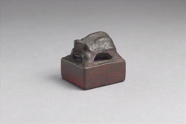 龜鈕,印面作「趙賀私印」白文四字,筆粗而深刻,無邊。